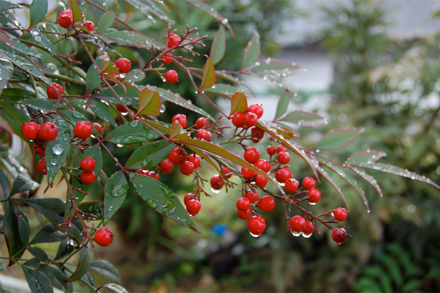 無病息災を願う「南天の箸(はし)」というのもあり、また防火・厄除けとして庭先や鬼門にも植えられるようです。