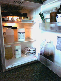 最近はだいぶ涼しくなったから染料を外に置いといてもそう悪くはならないという事で、冷蔵庫もちょっとスッキリしています。