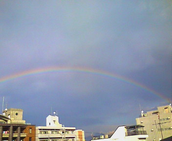 きれいな半円だったのに、ものの数分でさらに半分の円に。写真はその時の虹です。